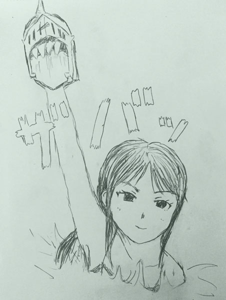 キン肉マンネタその2。7人の悪魔超人ネタは実は全員描いたんですが、結局水泳部の室戸先輩がコスプレをさせる事もなく一番シンプルにネタが成立しました。