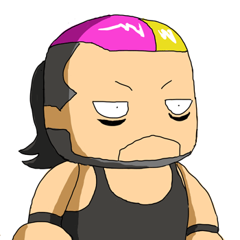 前回、内藤選手を描いた時の輪郭の線を流用して、今度はEVIL選手を描きました。 今回は前回以上にパワプロ側に寄せた画風にしましたが、無理に写実的に描くより絵としての収まりは向上しており、 やはり元からキャラクター性の強いような選手の方がこのネタには向いていますね。なんならイベント内容まで考えたりしてました。