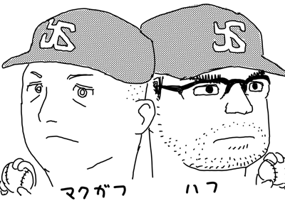 ここ最近はカラーばかりではなくハーフトーンを使った漫画調のモノクロ絵にも挑戦していまして、今シーズン中継ぎで活躍中の東京ヤクルトスワローズの両外国人投手、スコット・マクガフ投手とデビッド・ハフ投手です。 特にマクガフ投手はシンプルな線で似せられたと自画自賛しています。 それにしてもプロ野球似顔絵シリーズはヤクルトにやたら偏ってるのは何故なんでしょうか。