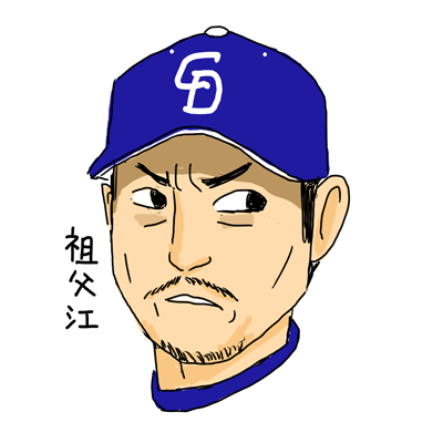 祖父江投手です。眉間にシワを作ってマウンドでしんどそうに投げる感じを表現したかったんですが、自分の絵柄との相性が良くなかったかあんまり似なかったですね。似顔絵のクオリティを上げたいなあ。